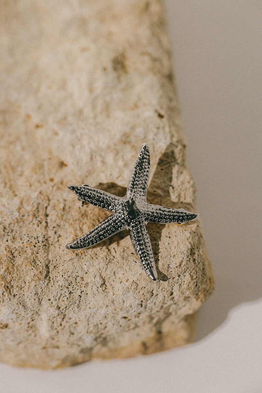 Broche Cléia en laiton plaqué argent - Ø 3 cm - avec une étoile de mer.