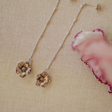 Boucles d'oreilles pendantes Gaïa avec une chaîne boules - longueur : 8,5 cm - en laiton plaqué argent avec deux fleurs.