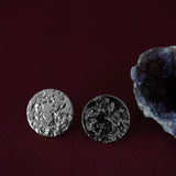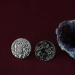 Maxi boucles d'oreilles puces Hestia - Ø 2,2 cm - en laiton plaqué argent avec un rond martelé. Les tiges d'attache et fermoirs sont en argent 925 afin d'éviter tout risque d'allergie.