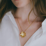 Collier fleur ciselée en laiton doré à l'or fin