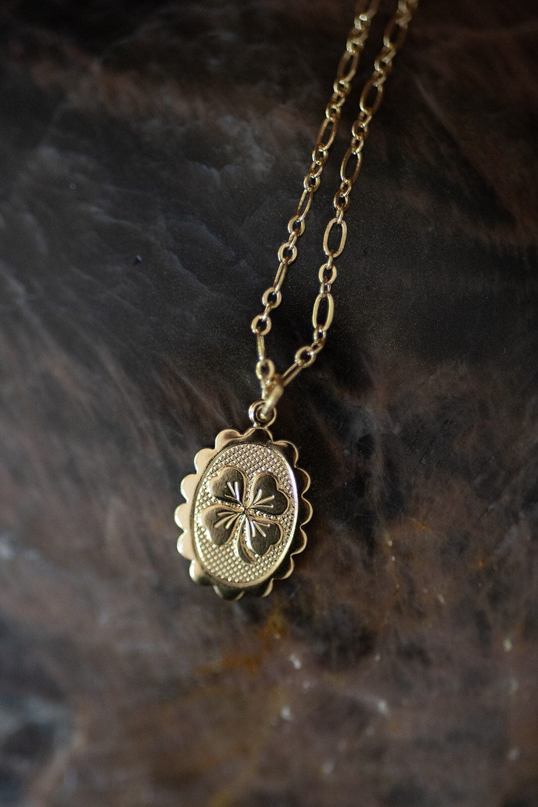 Collier trèfle porte-bonheur en laiton doré à l'or fin
