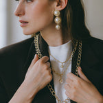 La collection Nélya fusionne l’élégance des perles majestueuses avec la puissance des chaînes, créant un contraste audacieux qui incarne la force tranquille et la féminité affirmée.
