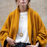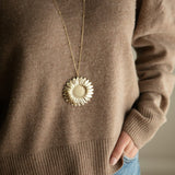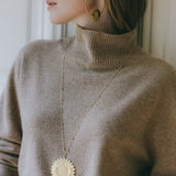 Sautoir fleur solaire oversize en laiton doré à l'or fin