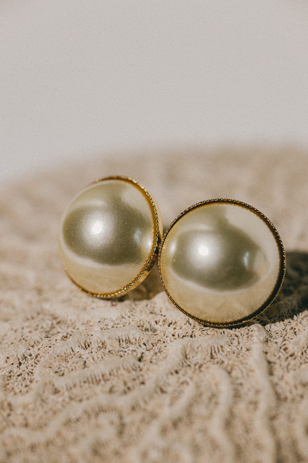 Maxi boucles d'oreilles puces Nélya - Ø 2,2 cm - en laiton doré à l'or fin 24k recyclé et certifié RJC-COC avec deux perles cabochons crèmes. Les tiges d'attache et fermoirs sont en argent 925 afin d'éviter tout risque d'allergie.
